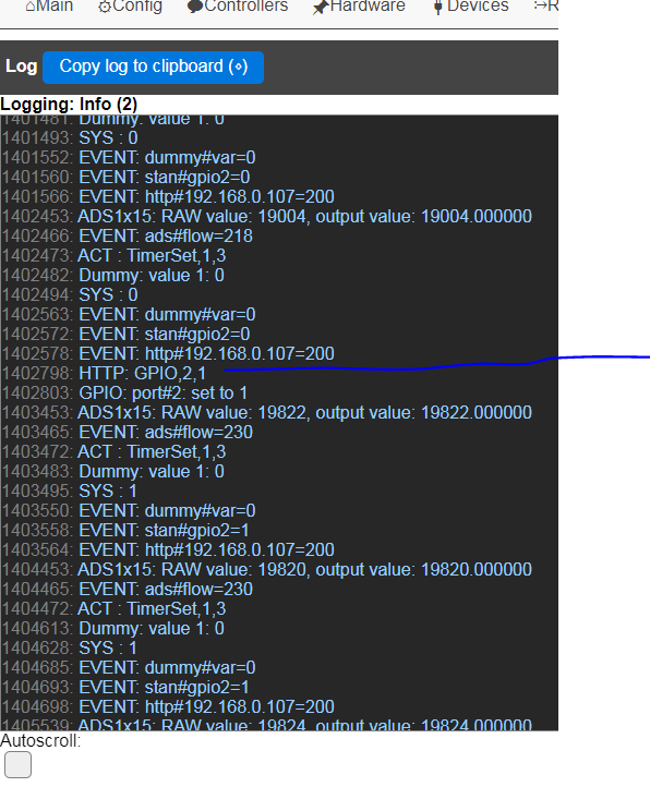 Działa, też fajne - zmieniłem tylko z on na off bo było odwrotnie, czyli jak był mały przepływ to włączył się. Natomiast jak w trakcie pracy wyłączę ręcznie GPIO to trzeba zjechać z przepływem w dół, znów przepływ do góry i wtedy dopiero się załącza ponownie przekaźnik.