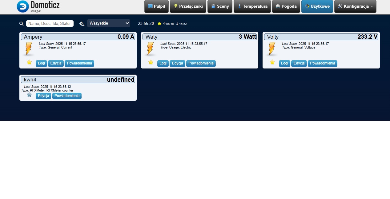 Domoticz Licznik energii RFXMeter counter nie liczy sam się usuwa