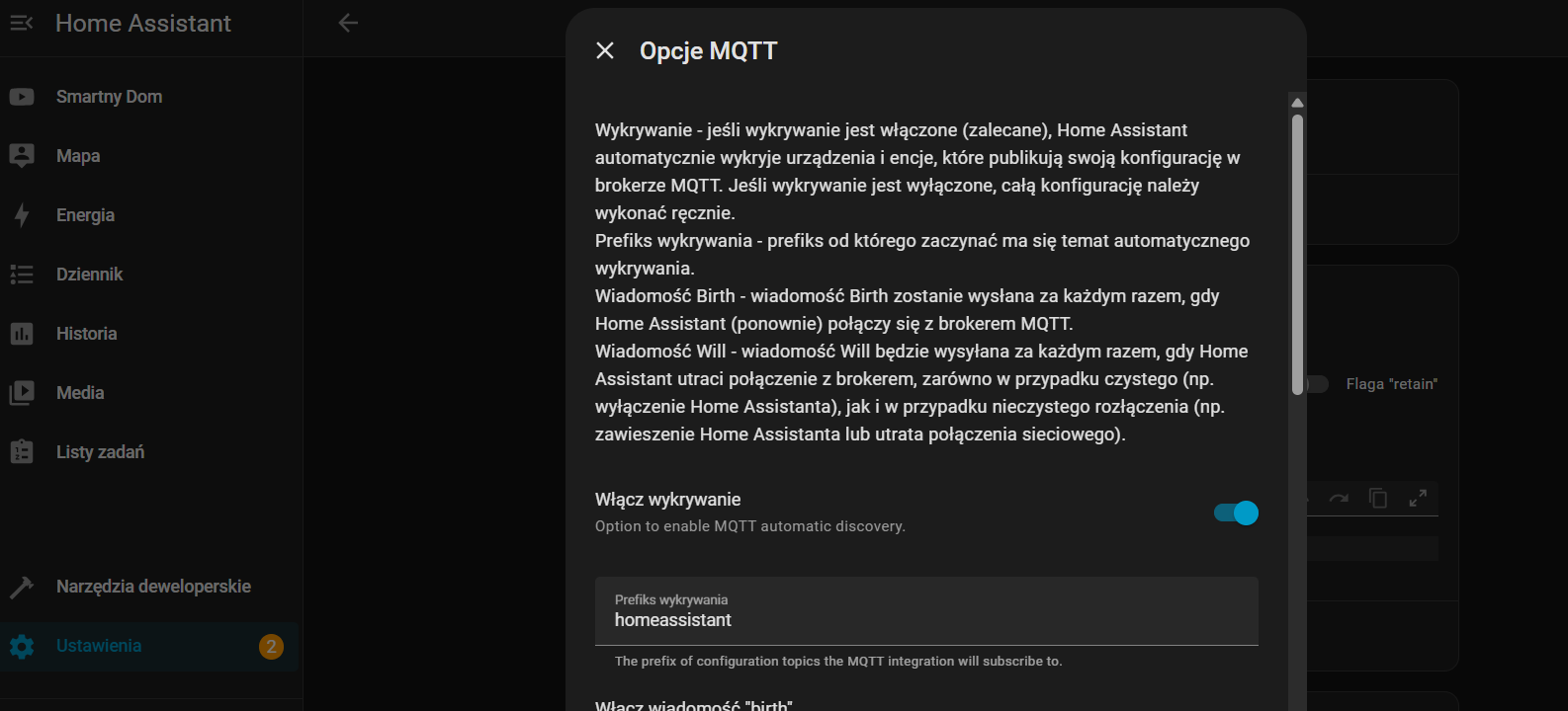 W HA sprawdziłem że jest zainstalowany i działa MQTT Broker.
