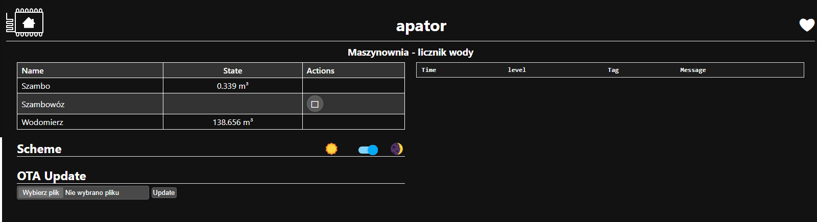 ESP8266 będzie standardowo odczytywał wodomierz , ale uzdatniłem go o funkcję szamba ( niestety w moim regionie oczyszczalnia nie jest możliwa , za wysoki poziom wód gruntowych).