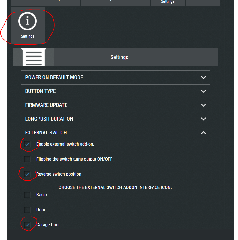 Bardzo ważne jest, aby było zaznaczone Reverse switch position. Jak tego nie zaznaczycie to jak będziecie mieli otwartą bramę to będzie ikonka zamkniętaj... więc żeby się nie mylić to tutaj musi być to zaznaczone, żeby jak te kontaktrony będą oddalone od siebie, to był obrazek (o tym za chwię), że brama jest otwarta.