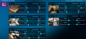 ustawienia robione na panelu, wisi na ścianie w jednym centralnym miejscu w domy