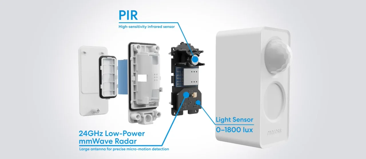 MS605 łączy trzy metody detekcji: radar mmWave do wykrywania drobnych ruchów, czujnik PIR do klasycznego wykrywania ruchu oraz sensor światła do automatyzacji zależnych od jasności. Komunikacja odbywa się przez Thread i Matter, co pozwala wpiąć czujnik w różne ekosystemy smart home bez zamykania się w jednej aplikacji.