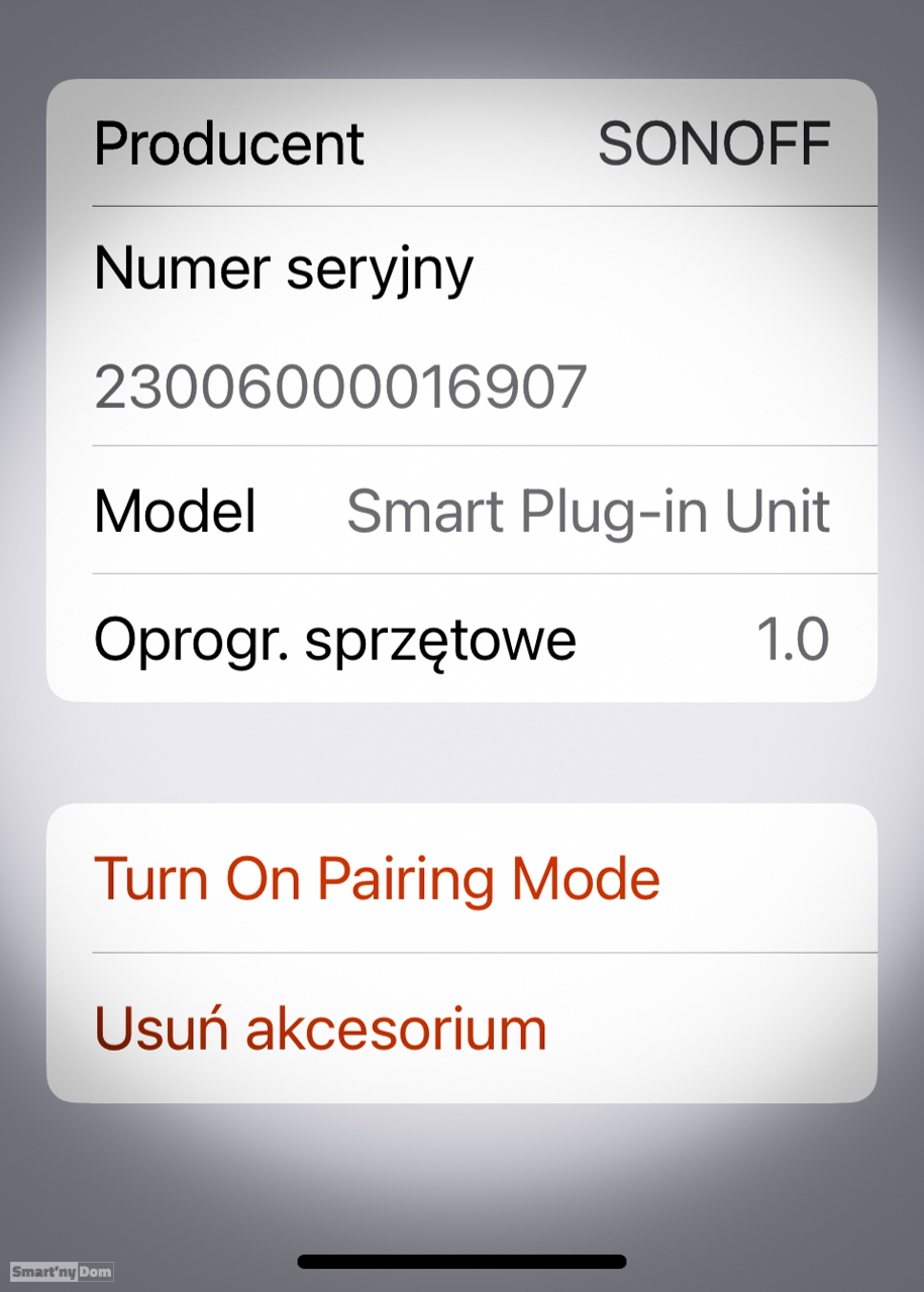 Jeśli dodaliśmy wcześniej Sonoff’a do, na przykład: Apple HomeKit, to w aplikacji Apple Dom konieczne jest wprowadzenie Sonoff’a w tryb parowania, a następnie przeprowadzenie procedury dodawania urządzenia w aplikacji eWeLink.
